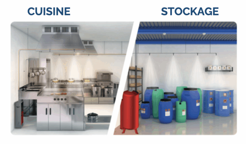 Solutions d’extinction automatique suspendues qui détectent et éteignent les départs de feu dès leur apparition, idéales pour les chaufferies fuel et gondoles à solvants. Activation automatique dès détection de la chaleur.