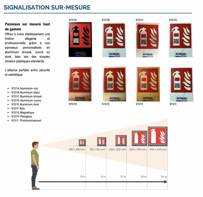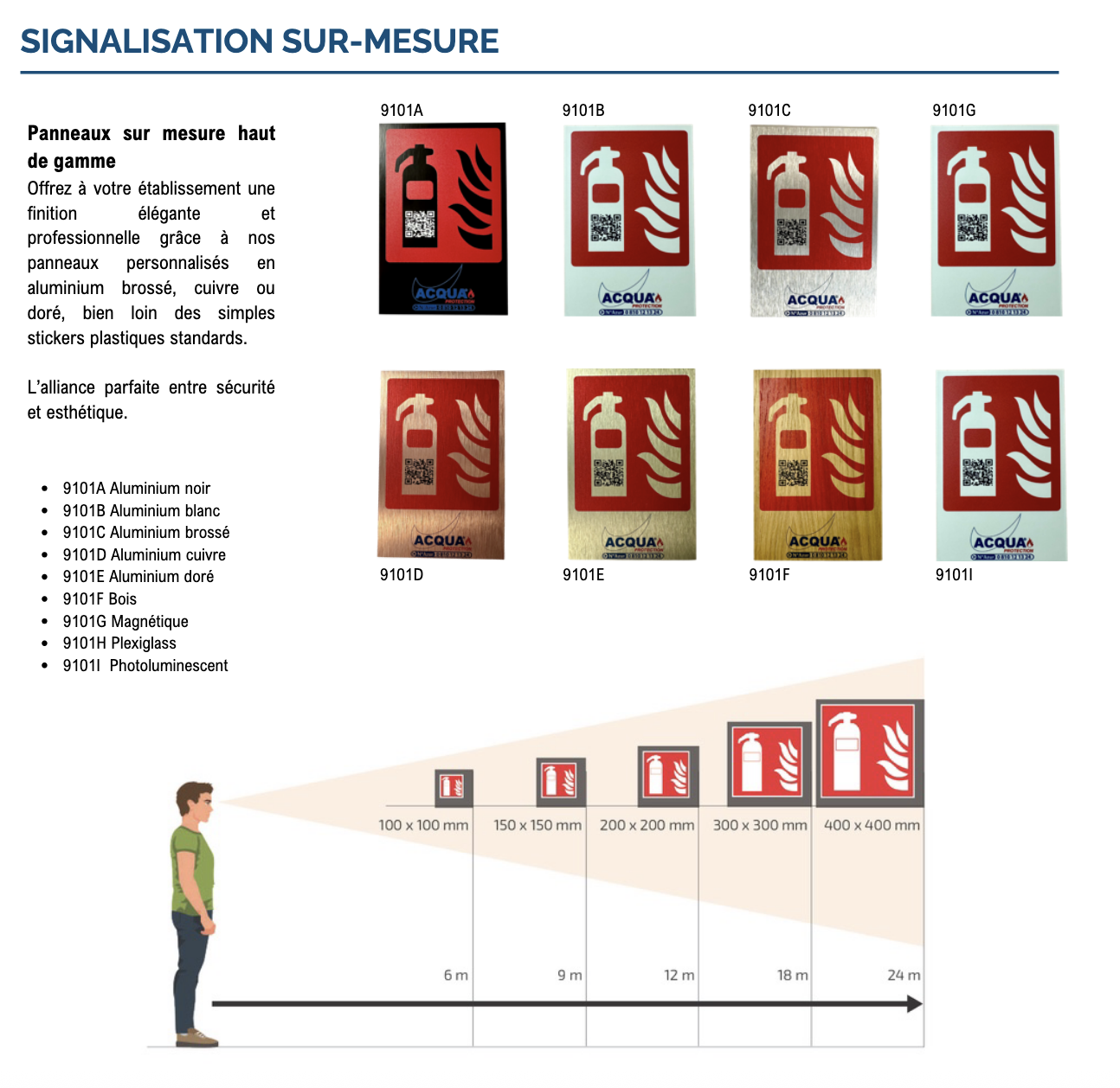 Certains panneaux précisent également des mesures spécifiques, comme l’interdiction de fumer, la localisation des points de rassemblement ou des zones de stockage de matières dangereuses. En respectant les normes en vigueur, cette signalétique joue un rôle crucial dans la prévention et la gestion des incendies, assurant la sécurité des occupants et facilitant le travail des secours.